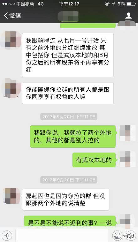 因为当时就只写下这个欠条,拿到欠条后我就回襄阳学校了,在襄阳学校几天,我就在网上咨询过律师这个欠条,缺少了写欠条的时间和写的内容等有问题,是否有玩文字游戏?现在我明显感觉受骗了,而且整个之前有加入投资小艺的人去找李逊要求每月的分红1000元,找过他要求退回投资的20000元,基本都没什么声。现在我只想要回我投资的20000元,维护自己的权益。 与刘文有相似经历的还有石昊、方杰等十多个人,他们都是武汉高校的学生,以前几乎都没有接触过VR,第一次体验的印象都让他们感到“惊艳”。在投入了1000元的入门费之后,他们都相继被鼓吹投入了20000元,参与所谓的线下体验店众筹,成为“股东”。 小艺则正好利用了这种新鲜而神奇的体验,以及“风口上的VR”,以创业的名义让学生对此动心。 据称,在武汉的各大高校中随处可见发相关传单的人,而群里也会经常看到创业项目的各种信息,创业、风口无不在诱惑着这个“蓄势待发”的群体。VR陀螺也经常会在VR行业群中见到小艺的代理,时不时在群内发布信息。 一时的心动直接导致之后深陷泥潭。从几名学生口中得知,截止到今年8月底,小艺社群的代理发展到了3000多人,还有一个专门的微信群(8月底被解散),里面全是投了20000元的核心“股东”,群成员很后数量为123人。所有人中,有80%以上都是学生。 按照这个数量来计算,流动的资金已经达到了540多万。除此之外,据称还有一些人未被拉入群里,另外,VR陀螺了解到,在核心“股东”中,有20-30人为高额复投者,很低5万元,很高达到10万,所以实际金额可能达到700万甚至更高。 1000元还好,20000元对于学生来说并不是一笔小钱,能够获得父母理解顺利投资的非常稀少,而大部分都是通过借款或者贷款来筹得。