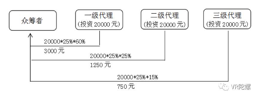 3、参与三级返利,拉到其他众筹人员的返利的规则为: