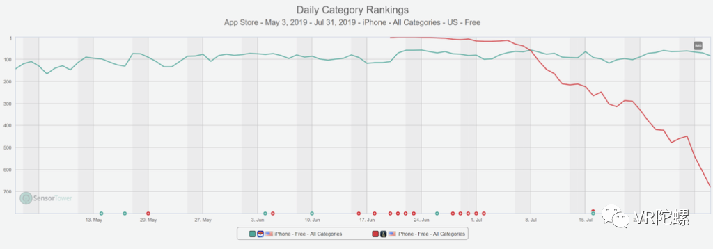 但这就是问题所在。《Pokemon Go》的开发商Niantic上月发布了另一款怪兽IP游戏:《哈利波特:巫师联盟》。在《Pokemon Go》发布后的18天内,《巫师联盟》的增长数据便滑落至《Pokemon Go》之后,并且它也已经低于下载量前1000的应用程序(《Pokemon Go》仍稳居前100名)。