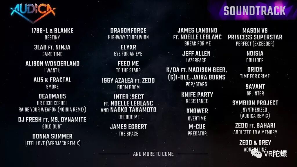 据称,《Audica》包括四个竞技场,各种各样的武器,一套自定义选项用于个性化的游戏体验,以及一份包含30多首游戏歌曲的原声带。