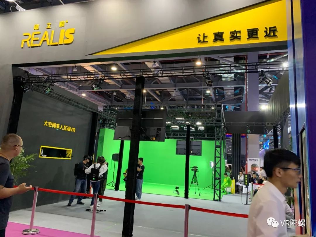 在瑞立视展台,其搭建了120平米的绿幕大空间,可以现场观看MR虚拟拍摄系统——瑞立视·魔方。
