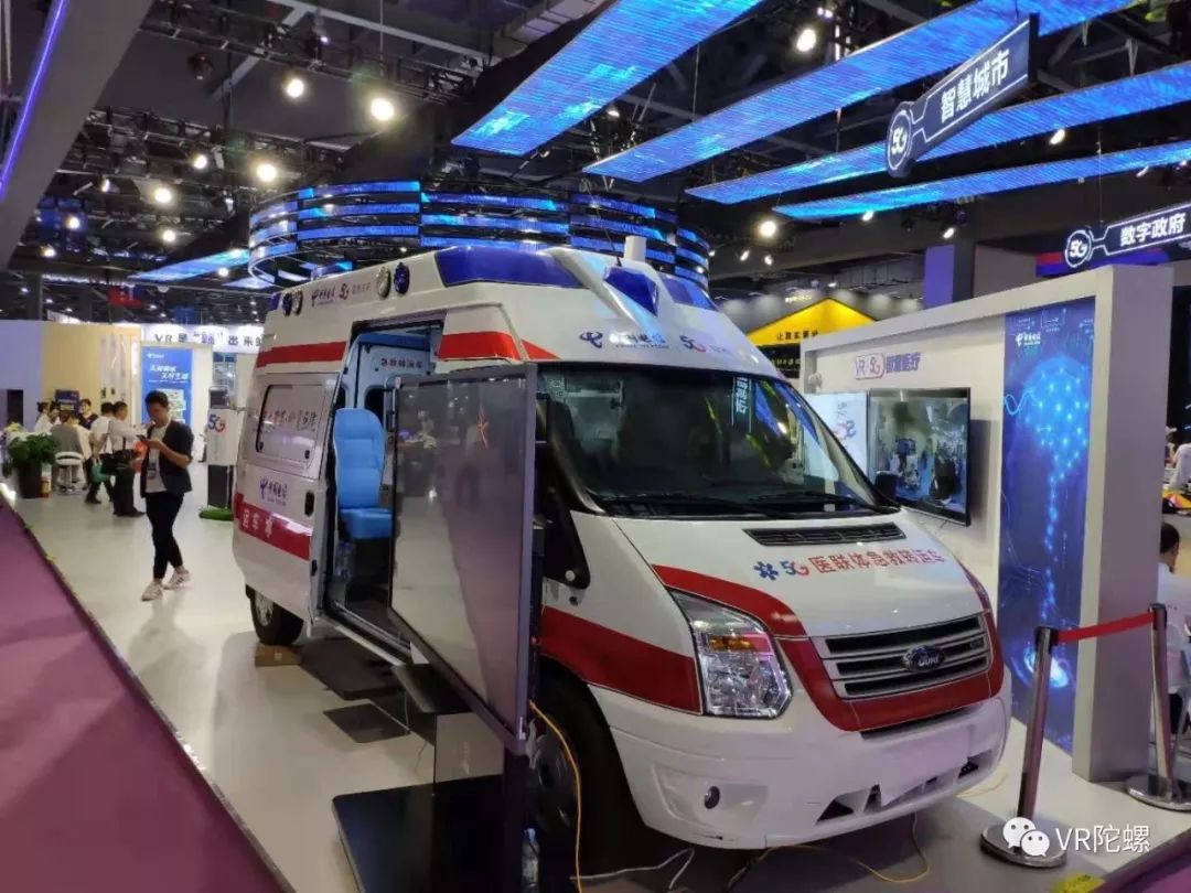 现场中国电信展示了与开沃汽车和中国信科合作的5G远程驾驶技术,5G+急救等,据工作人员介绍在5G网络的加持下,急救车可以与医院形成实时交流,为救援工作提供指导。