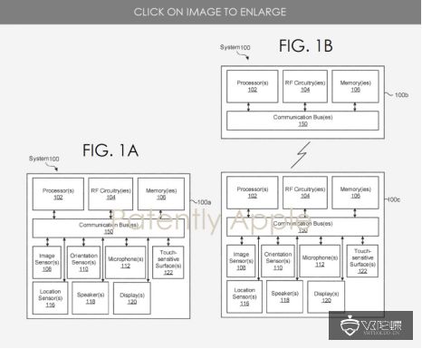 Apple专利FIGS. 1A和FIGS . 1B展示了用于各种计算机生成现实技术的示范系统#100。