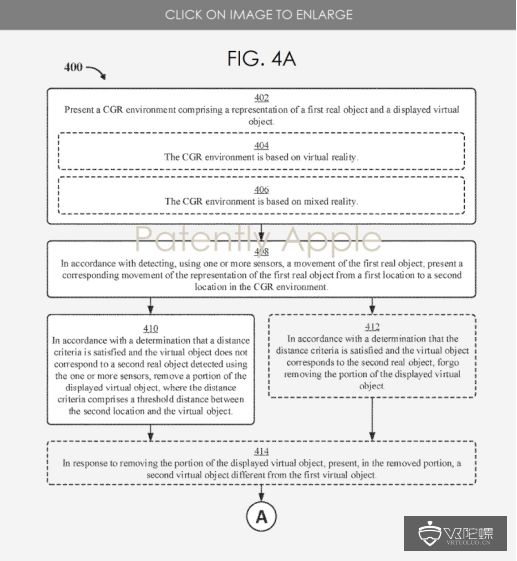 下面的苹果专利图4A是一个流程图,演示如何在CGR环境中提供可视化反馈。