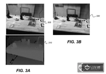 据描述N301采用了Inside-out的定位方案,产品的摄像头安装在设备外部,允许人们能够看到并与周围环境互动。而在VR陀螺查看苹果相关专利的过程中,陀螺君发现两则类似的专利,其一是在8月26日公布的追踪专利——“Head-Mounted Display For Virtual And Mixed Reality With Inside-Out Positional, User Body And Environment Tracking”;以及10月8日美国专利局公布的苹果专利中的一则搭载RGB-D深度传感器实现3D高精度建模的技术。