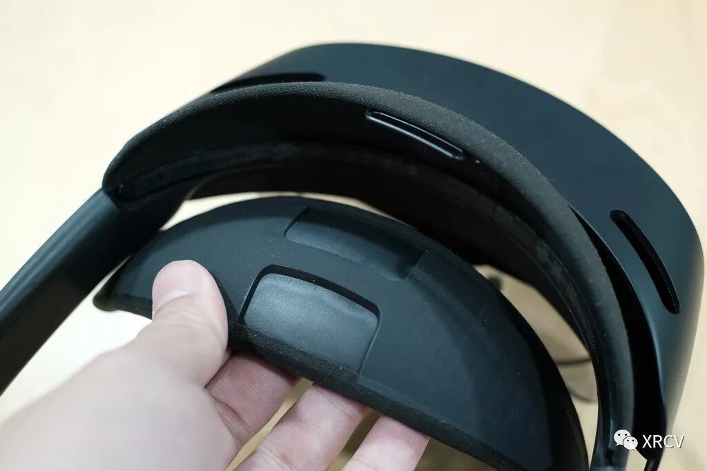 注意由于结构的改变,HoloLens 2的连接件不再是简单做固定,内部有走线连接计算单元和电池。一代头带坏了拆下来还能换,二代断了基本上眼镜就挂了,切忌暴力佩戴!我们的一代设备被醉鬼、大妈和熊孩子分别搞坏过头带。二代上的护额板可以轻松拆卸更换,但基本上这部分更换是卫生问题,大碑儿头冒汗浸湿了别人觉得恶心,倒不容易损坏。