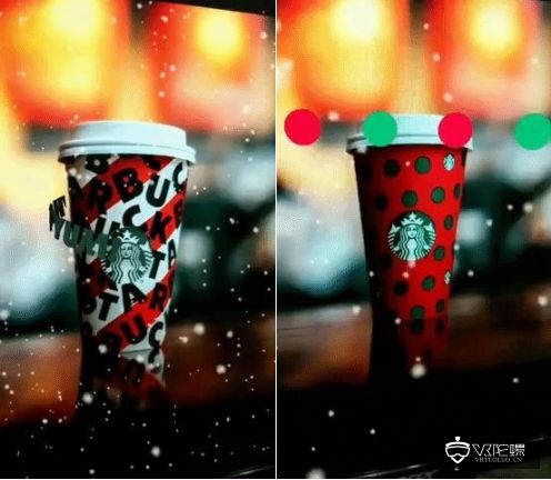 星巴克推出的四款限量杯都有其对应的AR滤镜。用户拿出手机扫描就可以看到周围出现AR版本的问候卡短语、各种虚拟雪花、斑点和装饰效果。