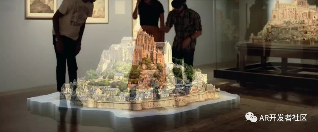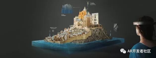 上图是巴黎计划救济博物馆的访客使用Microsoft HoloLens在地标性圣米歇尔山的3D立体图周围获得了混合现实体验。 计划博物馆博物馆(Muséedes Plans-Reliefs)正在与Microsoft合作,通过使用混合现实技术,使参观者通过AR参观圣米歇尔山的外观和故事。
