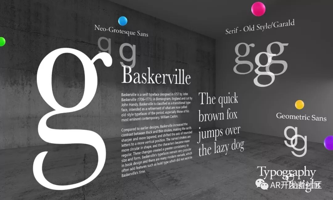 HoloLens的Typography Insight鼓励人们在3D混合现实空间中体验、学习和玩印刷术字体。Typography Insight使用户可以在3D混合现实空间中布局字体。通过各种印刷属性,用户通过AR能够体验和理解该类型的特征。