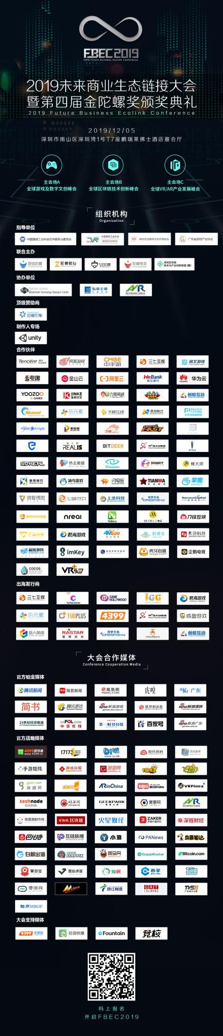 2019年12月5日,由中国通信工业协会区块链专业委员会、中国通信工业协会虚拟现实专业委员会、广东省游戏产业协会、深圳市互联网文化市场协会指导,行业头部媒体游戏陀螺、VR陀螺、陀螺电竞、陀螺财经、深圳区块链技术与产业创新联盟联合主办的2019未来商业生态链接大会暨第四届金陀螺奖颁奖典礼(简称“FBEC2019”)在深圳市南山区深圳湾1号T7座鹏瑞莱佛士酒店宴会厅盛大开幕。