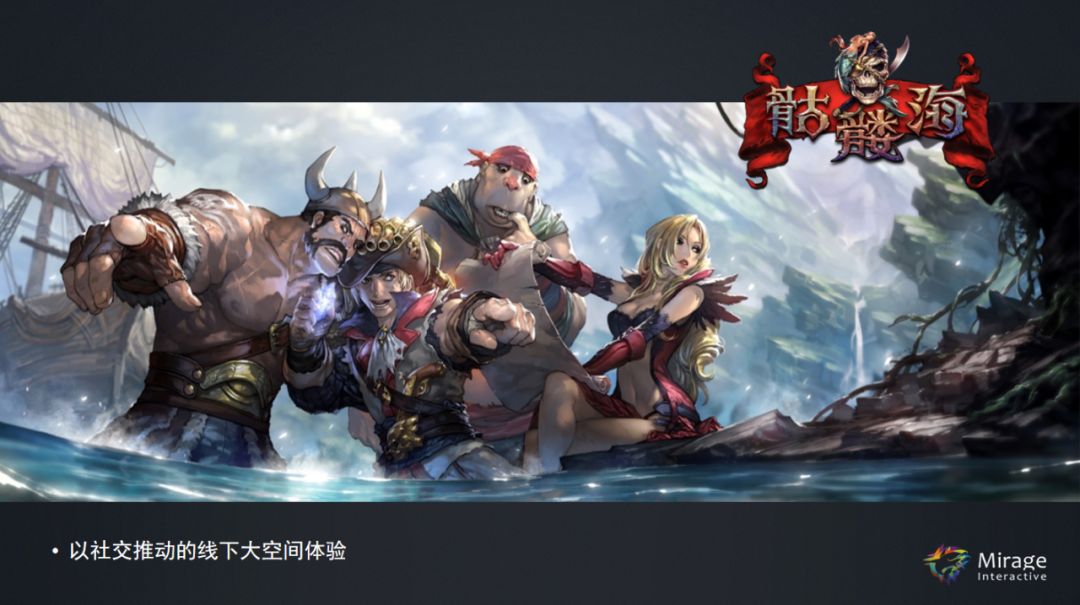 2.《骷髅海》的线下版本。我们可以在线下大空间里实现让大家去一起社交,这款游戏完全是通过社交的方式反馈回来的,每一关的设计一定要满足社交的几点,大家一起去战斗,一起去寻宝,一起去开船,一起解决各种各样的问题,大家在线下的空间中可以像海盗一样去感受。