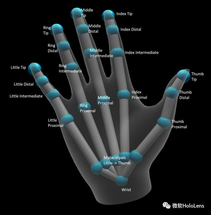 HoloLens 2 配备了前置100万像素深度摄像头,并且提供了全关节捕捉的手势识别技术,可以对每只手进行25个关节点的捕捉和姿态分析。用户可以运用自然的手部动作对全息物体进行抓取,缩放,移动等等。