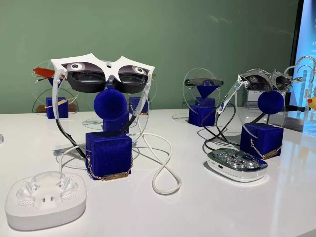展台上除了最新的同名款AR眼镜、蓝牙耳机外,还展示了Percy Lau其他的时尚单品,其中就有易烊千玺曾经戴过的一款眼镜。