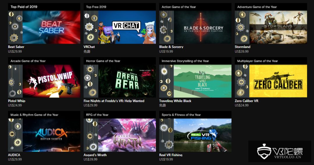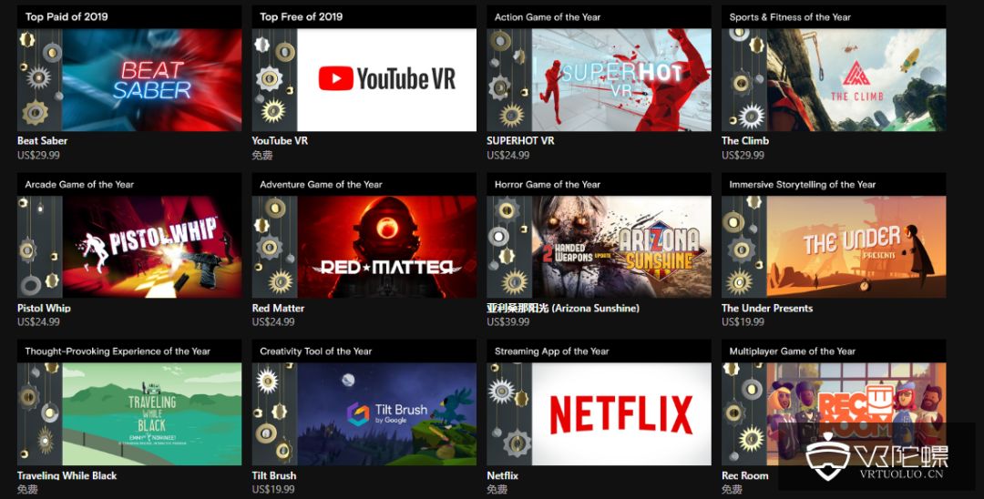 在Quest和Rift上获得年度最佳付费应用的是今年TGA上获得2019最佳VR/AR游戏的Beat Saber,平台售价为29.99美元。