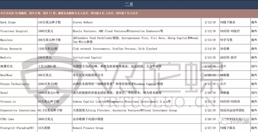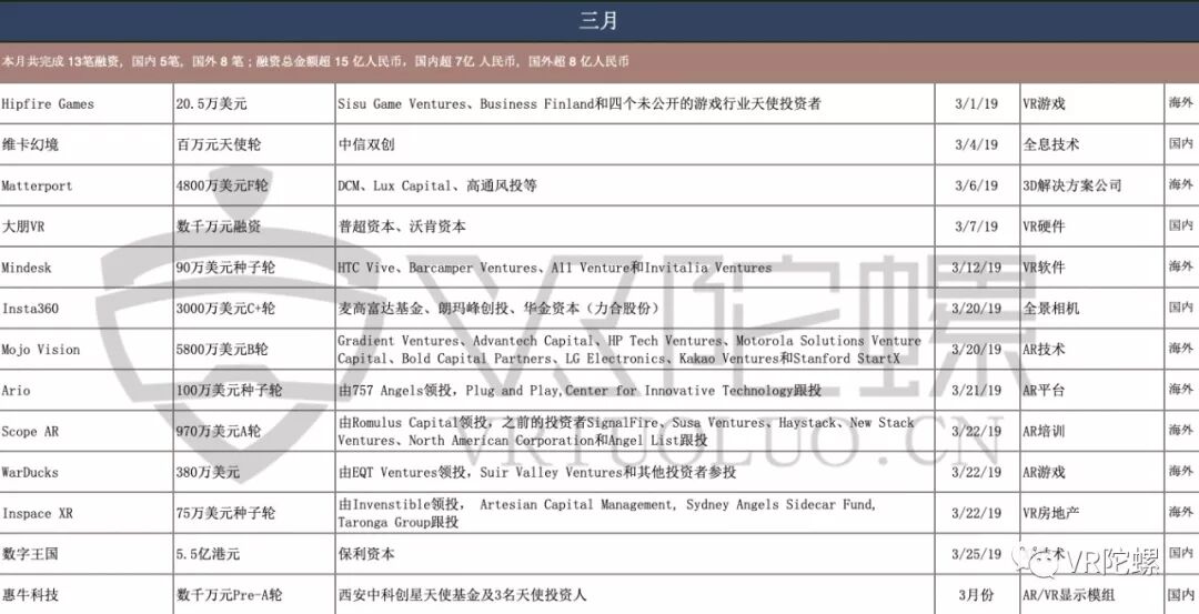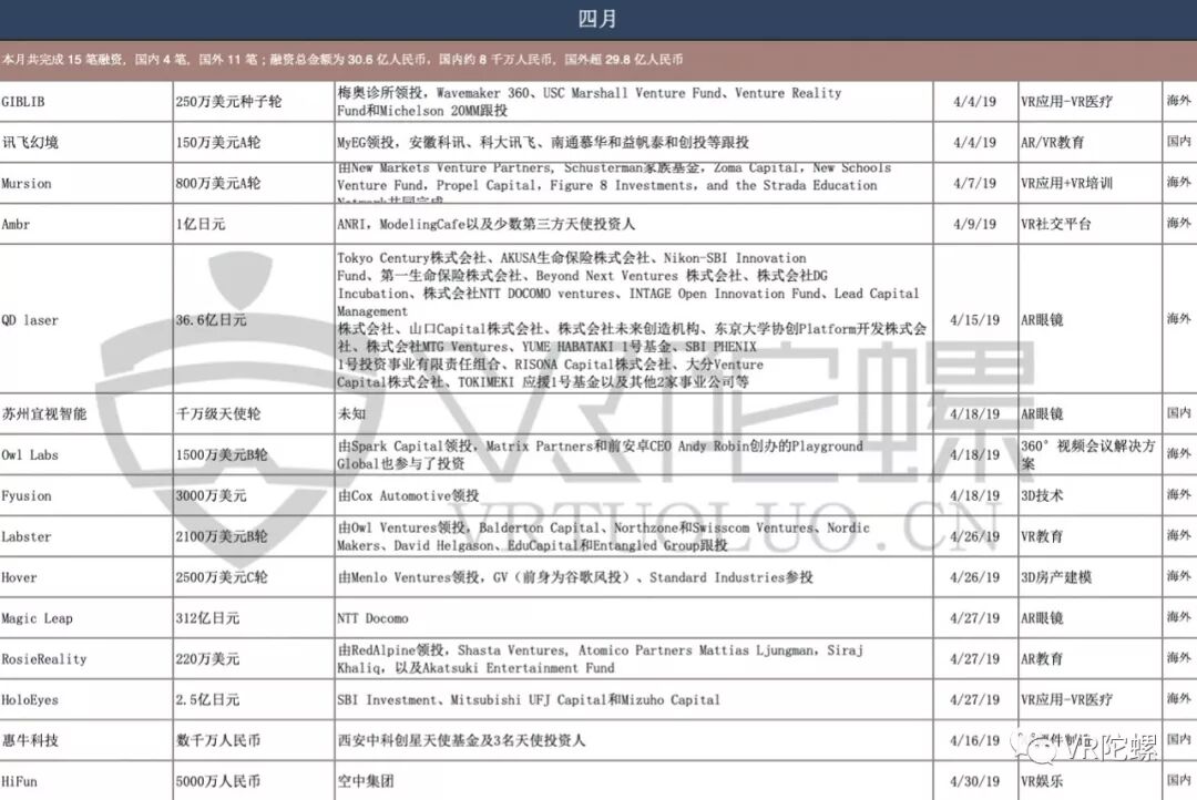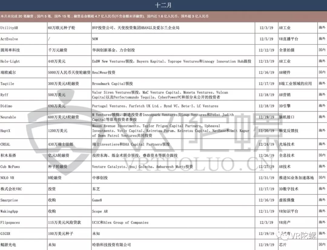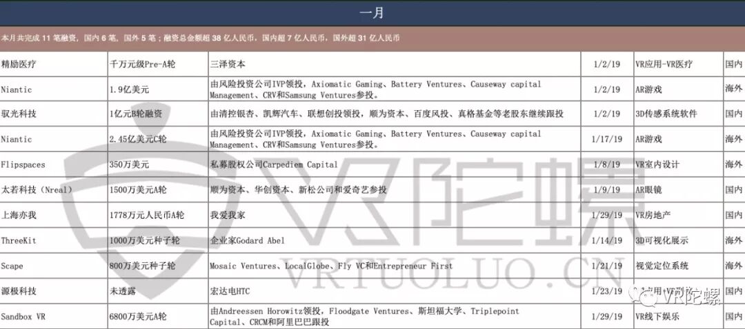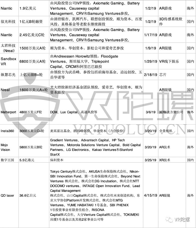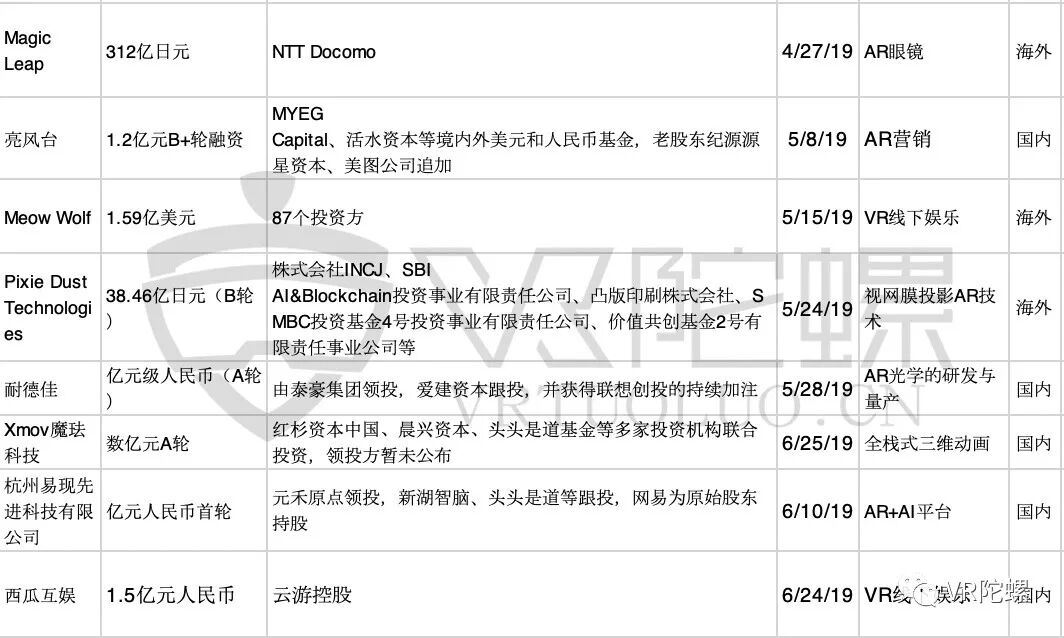 2019年的VR/AR产业不再与之前一样由VR产业支撑,AR市场今年势头难挡。尽管VR领域依旧吸引了不少投资者青睐,但是今年多笔融资却集中在了AR领域。