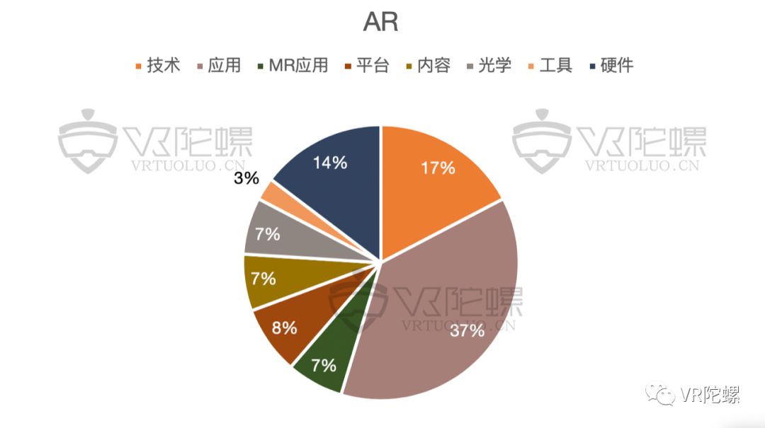 除了VR和AR两大类的融资引人注目,今年市场对3D工具和技术、脑机技术、光学技术的投资也颇多,占投资市场的21%。