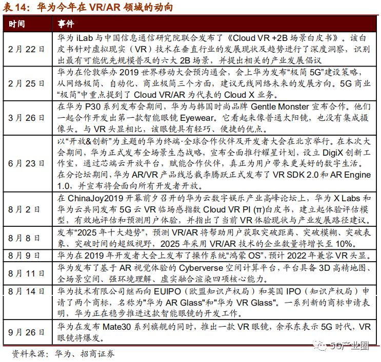 同时,9月26日华为推出VR眼镜,预计5G时代,VR眼镜将迎来爆发。