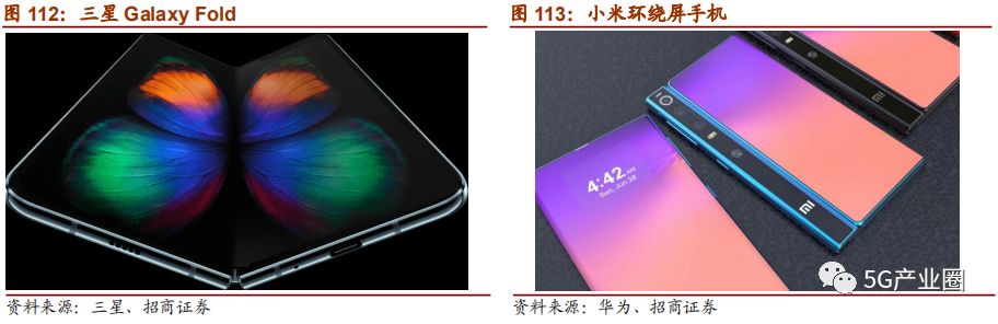屏幕、摄像头等运用的的升级将带来智能手机单机价值的提升。三星、华为在世界移动通信大会上先后发布折叠屏手机,折叠屏手机有望引领下一个智能手机浪潮。折叠屏将给面板厂商带来新的技术挑战和商业契机。折叠屏在面板材料、设计方案、制造工艺等带来了新的挑战和升级空间。因此在面板厂商折叠屏良率提升、产能释放之后,折叠屏上游材料、下游封装有望迎来发展良机。