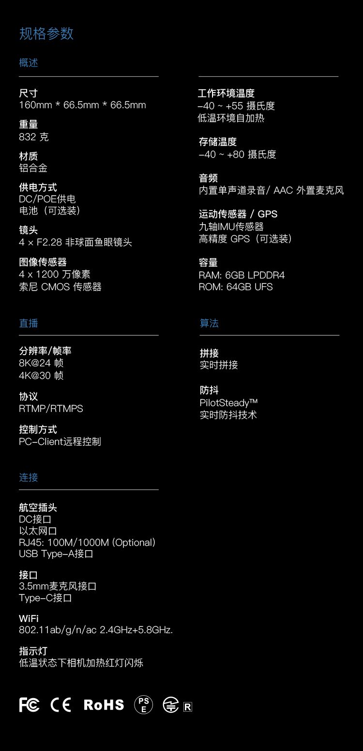 近日,深圳圆周率(Labpano)推出全新8K全景相机Pilot Lock,搭载4颗1200万像素F2.28非球面鱼眼镜头,其不仅支持8K/24帧、4K/30帧不同模式高分辨率全景直播,还能够支持实时拼接和实时防抖。