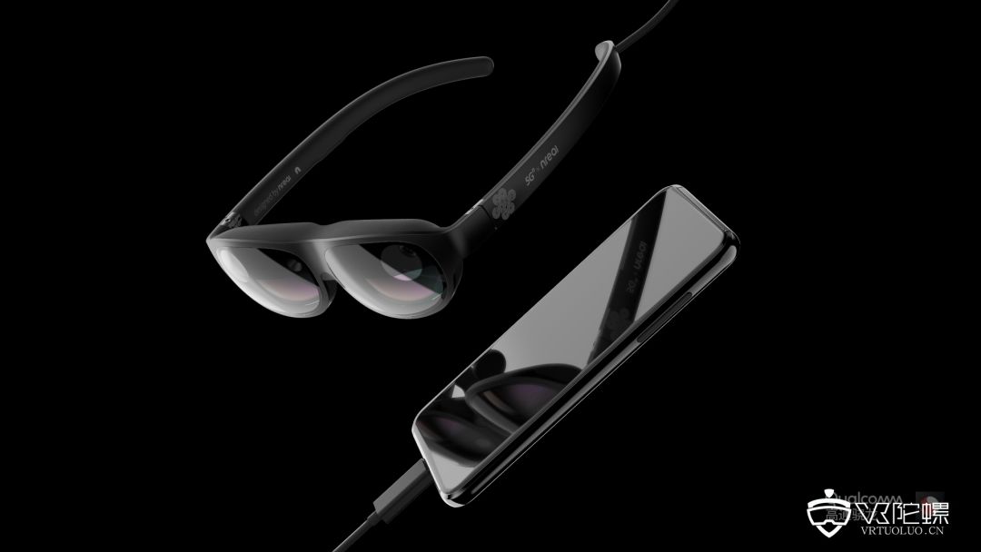 与其他一体式MR眼镜不同的是,Nreal能够通过USB-C线与搭载了高通骁龙855、855 Plus以及865移动平台的5G智能手机连接,能够在眼镜中使用或查看手机端的内容,也可以将手机作为手柄操控,降低了用户使用门槛。