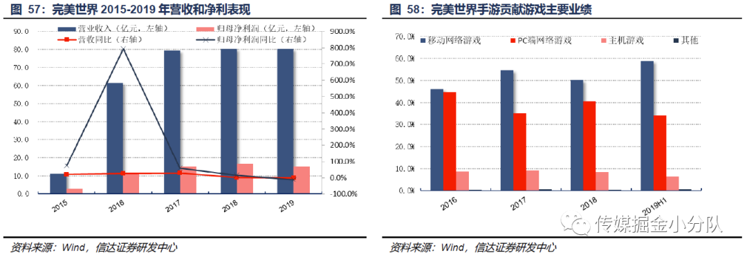 端游、手游、主机游戏、电竞构造多元化产品矩阵。端游方面,《诛仙》、《完美世界国际版》、《DOTA2》、《CS:GO(反恐精英:全球攻势)》等持续贡献稳定收入。2018年6月,公司与Valve公司达成战略合作,共同建立Steam中国,打造为中国玩家量身定制的PC端游戏分发平台。2019年8月,公司协助Valve公司在上海成功举办《DOTA2》2019年国际邀请赛(Ti9),这也是Ti系列赛事首次在中国举办,推动公司电竞业务的进一步增长。手游方面,《诛仙手游》、《完美世界》手游等旗舰产品延续稳定表现。2019年7月底上线的金庸正版IP手游《神雕侠侣2》上线后稳居iOS畅销榜前列,备受玩家认可。储备的游戏产品包括《我的起源》、《新笑傲江湖》、《新神魔大陆》、《梦间集天鹅座》、《梦幻新诛仙》、《战神遗迹》、《幻塔》等,涵盖MMORPG、回合制、ARPG、SLG、Roguelike、卡牌等多种类型。主机游戏方面,2019年上半年,公司陆续推出了旗下中法团队合作研发的《非常英雄(UnrulyHeroes)》、国内团队自研的多边不对称生存游戏《DON'TEVENTHINK》,获得玩家广泛关注。2019年8月,由公司发行的端游及主机双平台游戏《遗迹:灰烬重生(Remnant:FromtheAshes)》上线,为公司带来了良好的收益。