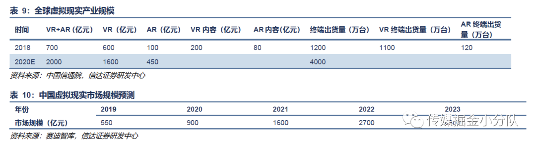 1)整体产业规模口径:根据Greenlight Insights的预测,2020年全球VR+AR产业规模总计2000亿元左右,其中VR1600亿元,AR450亿元,国内市场规模将达到900亿元。预计到2020年全球终端出货量将达到4000万台。