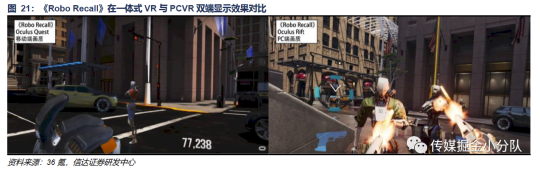 无法采用桌面级硬件且移动级芯片性能孱弱,目前VR一体机的游戏体验较差。VR一体机由于体积需要小巧以便携,续航长以满足日常外出携带使用,因此无法采用耗能大、产热量高、体积大的桌面级CPU与GPU,完全依赖移动端芯片进行本地渲染难以支持VR游戏极高的性能需求。