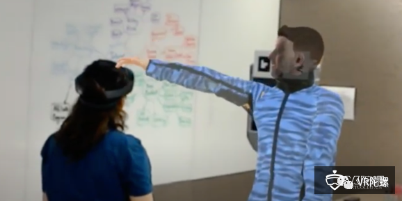 VROOM还可以将2D图像转换为3D头像,以将远程工作人员的脸部放在虚拟化身的头部。VROOM系统还为VR用户提供了第一人称视角,因此远程工作者可以看到他们的手部动作和手势,以及使用HoloLens头显的人。当远程工作者指示机器人移动时,可以看到虚拟化身行走。