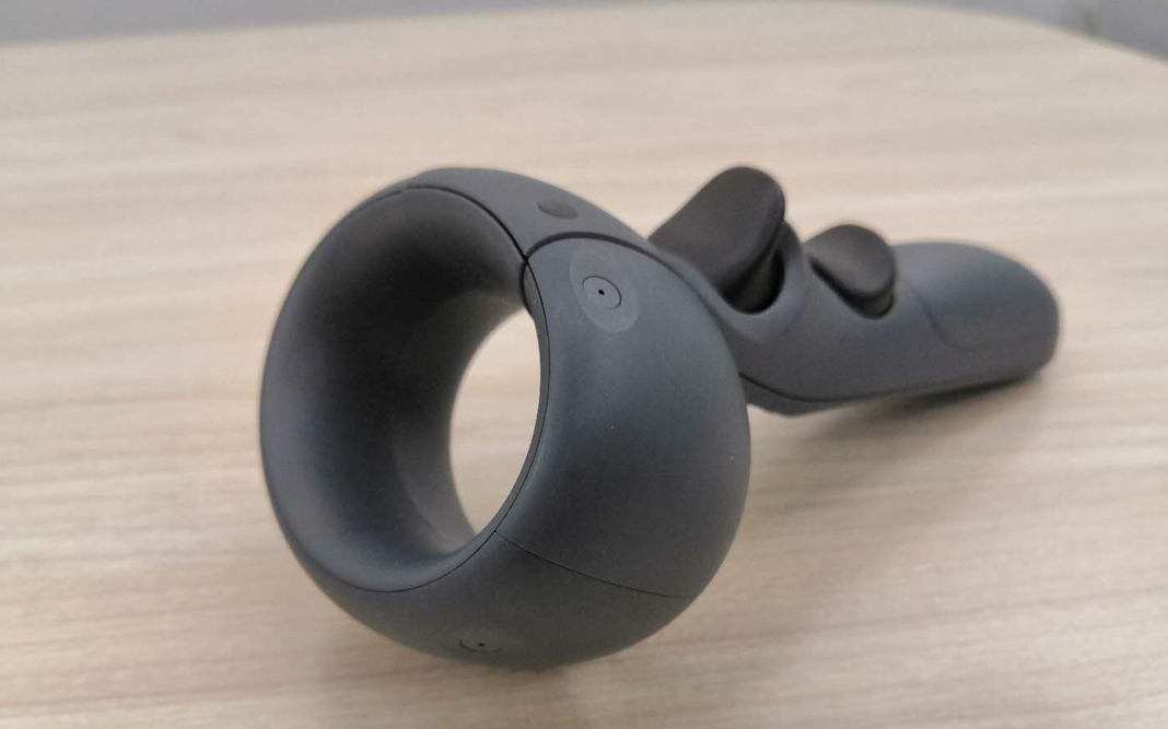 手柄正面设计了触控板、菜单键及HOME键,背面是扳机键与握柄键,每个手柄通过两节7号干电池供电,在新品套装中有配备。