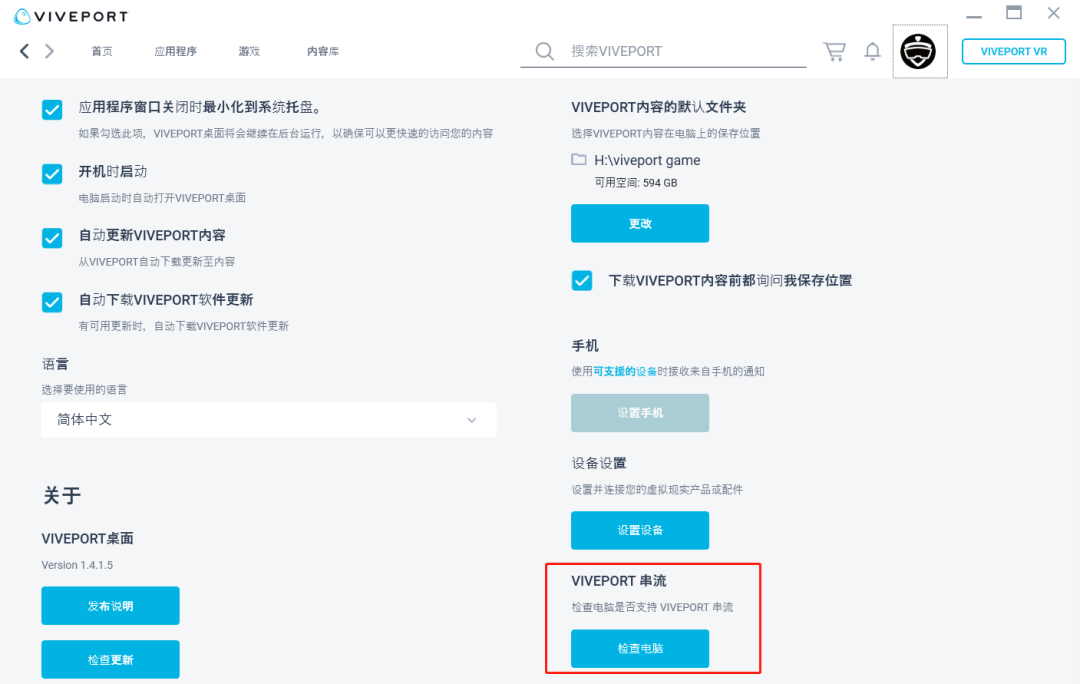 除了应用商城的游戏资源外,奇遇2 Pro还可以通过串流PC的方式游玩Steam VR游戏。该设备目前已经适配HTC VIVEPORT串流方案,仅需在PC端上安装VIVEPORT客户端,确保一体机与PC连接至同一网络下,在一体机中开启串流功能即可。