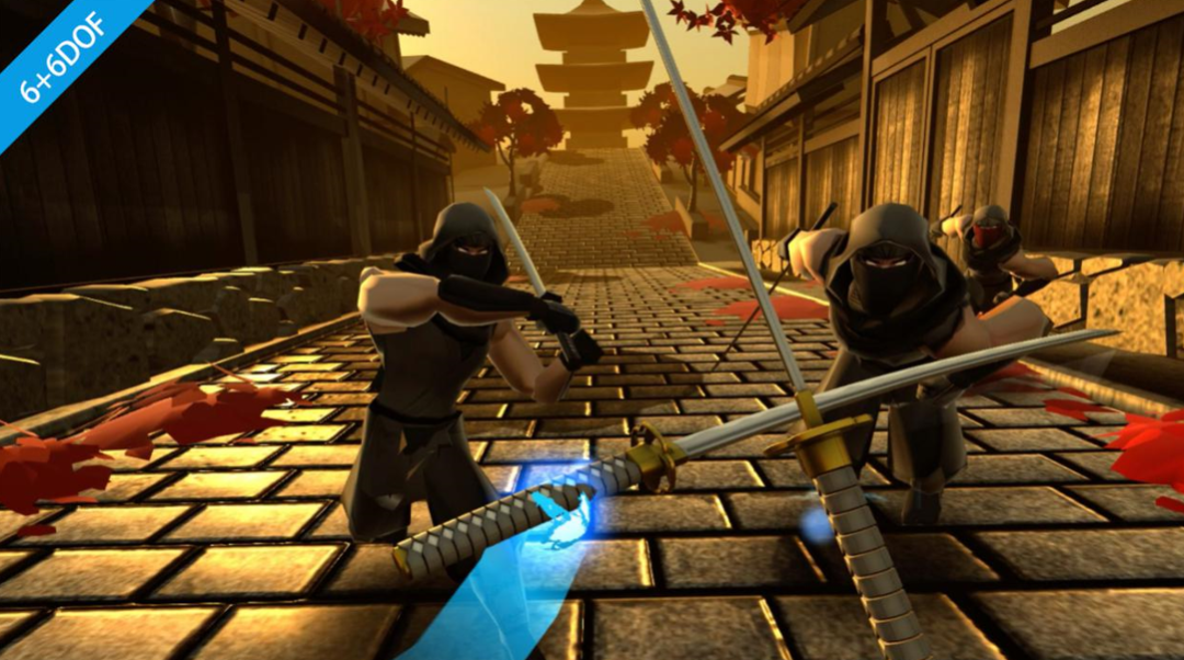 接下来的游戏是《忍者传奇》,游戏中玩家扮演的是武艺高强的忍者,在不同的关卡中使用龙头棍或者武士刀,或者其他忍者武器,结合多种技能,迎击四面袭来的敌人。这款游戏是一款VR动作类游戏,明快的卡通风格,虽然少了几分真实感,却能够减少对性能的负荷,从而获得更流畅的游戏体验。
