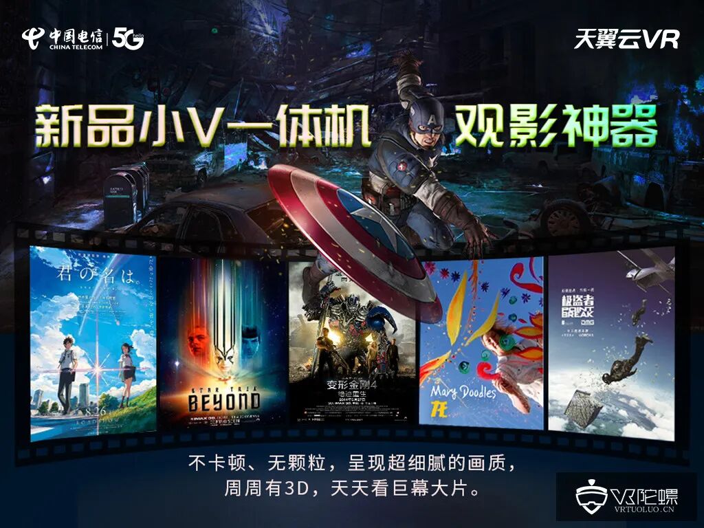 得益于中国电信5G高速、稳定、可靠的网络优势,让4K/ 8K 超高清视频信号的实时传输成为可能。小V一体机不仅已全部支持4K高清大片,让用户在VR的环境下观看4K大片也不卡顿、无颗粒,呈现超细腻的画质,实现真正的巨幕超高清效果;小V还为用户带来更加炫酷的3D观影体验。中国电信天翼云VR将持续为用户推荐电影库里的精彩3D电影,实现周周都能有3D,天天巨幕看大片。