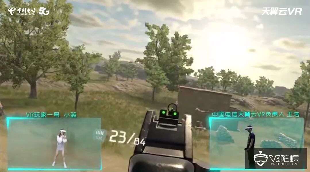 本场发布会不仅采用了广电级虚拟演播方式,还首次在现场与拥有千万粉丝的头号玩家KOL小蓝实时联机,使用Pico Neo2套装,展示了天翼云VR独家首发的《绝命战场》VR吃鸡游戏,双排组队模式零距离并肩作战,带来了一段精彩刺激的游戏直播,游戏全程流畅不卡顿,展现出了超高的性价比。