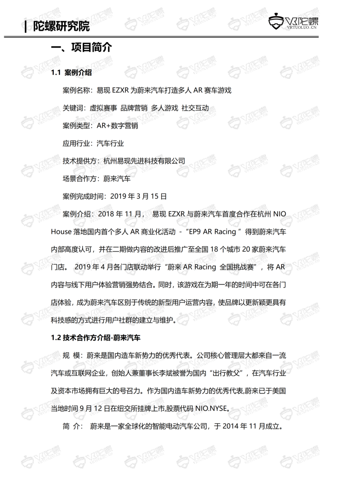 本期案例的技术提供方是易现EZXR为蔚来汽车打造多人AR赛车游戏。(获取团队联系方式请添加VR陀螺XR案例负责人:尤加(微信号:13129537525)