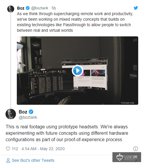 据Facebook的AR和VR负责人Andrew“ Boz” Bosworth称,该公司已经在投资使用这些技术“增强远程工作和生产力”。他甚至分享了一段视频,其中包含使用原型Facebook硬件和软件进行的实验测试的真实镜头。