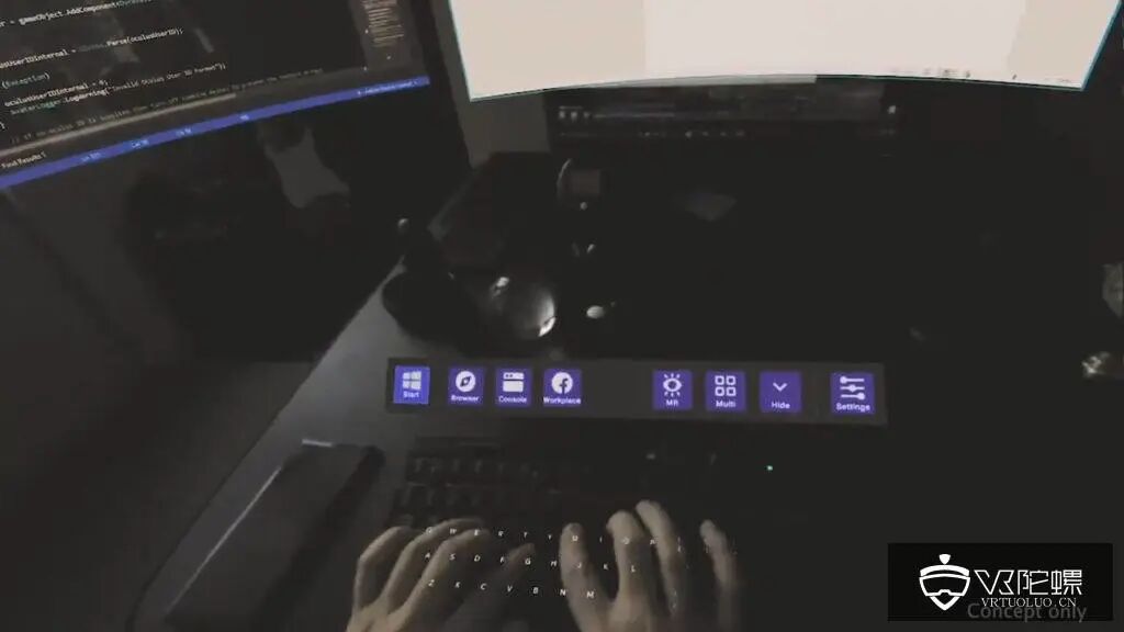 除了虚拟便利设施外,似乎这种混合现实原型还能够数字化增强真实物体,如浮在Bosworth键盘上方的全息文字所示。似乎还有一个小菜单,他可以访问各种选项和工具,例如浏览器,控制台,Facebook的新“ Workplace”平台和设置。