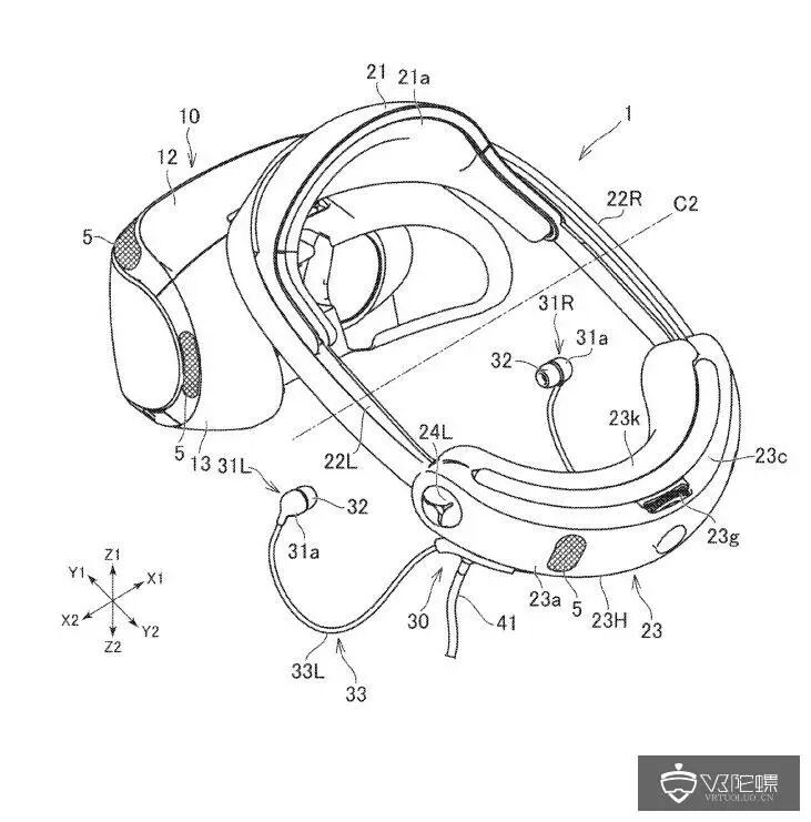 最后一个专利展示了PSVR头显的细微变化,专利中的头显带有内置耳机。更重要的是,虽然PSVR具有直接插入耳机的选项,但索尼正在寻求提高易用性的方法,因为该专利详细介绍了无需拆卸VR设备即可轻松定位耳机的功能。