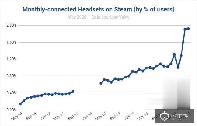 事实上,VR头戴设备的数量已经从4月份的1.91%上升到5月份的1.92%。