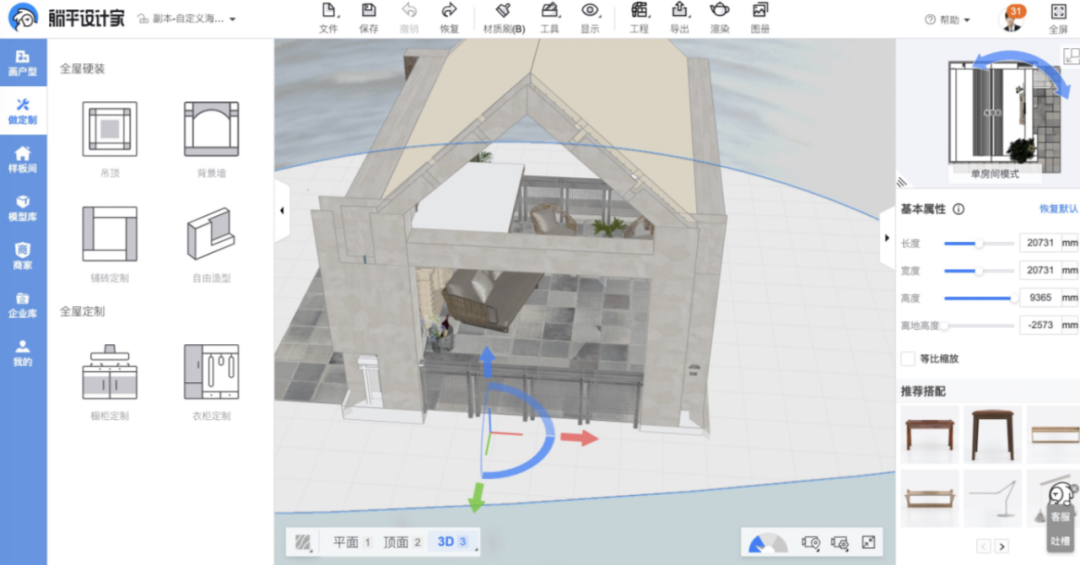 方案b依托阿里旗下“躺平设计家”的3D设计工具高效地帮助场景重建人员快速的完成场景1:1还原,一个重建人员每天可以还原2-3个200平米左右的线下门店或者楼盘样板间。