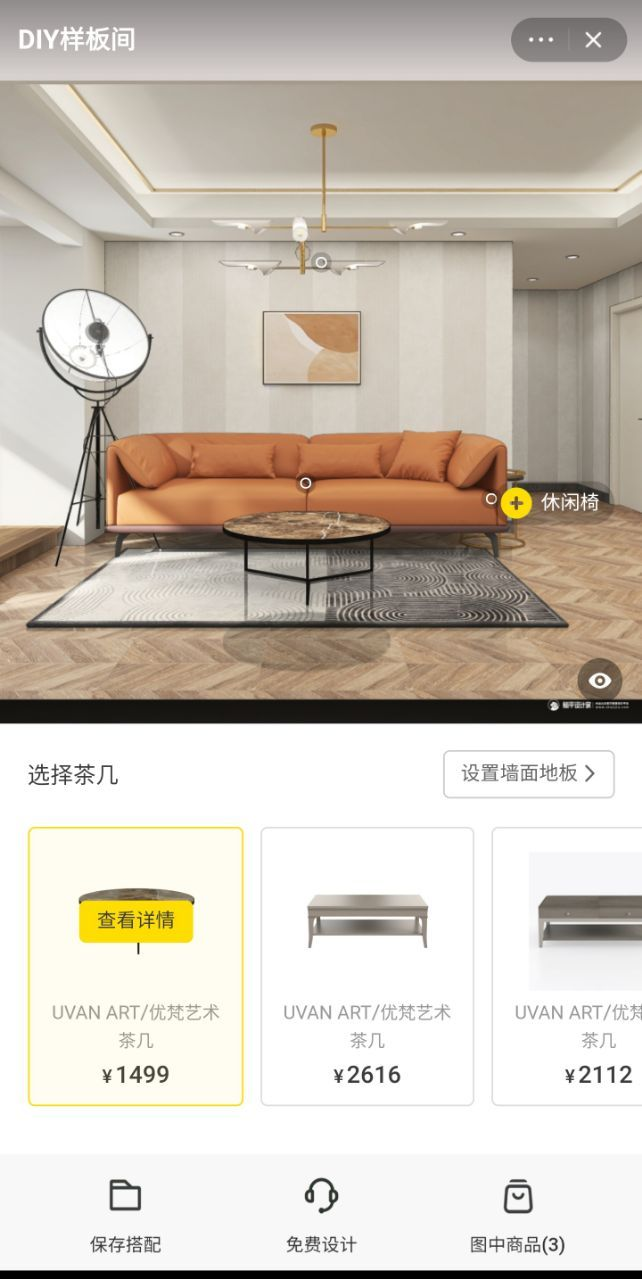 当用户浏览一个场景的时候,可能会有这样的需求“如果刚才看中的商品放到这个场景里是什么样子?”,3D场景内容提供了这种个性化需求的解法,用户可以将场景中的任何一个商品替换成另一个商品并查看其在场景中的效果。