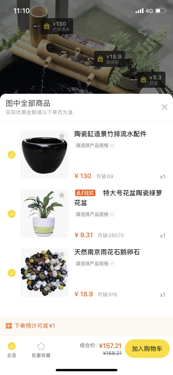 在场景化导购中,场景对用户需求不再是单个商品的激发,而是多角度的激发。用户看到一个茶几,也能看到茶几上漂亮的摆件,最终可能是小摆件+茶几的组合让用户产生兴趣。在这种新导购场景里,我们融入阿里积累多年的营销互动玩法,还尝试了多种新的模式。