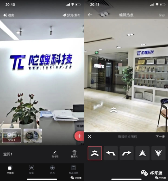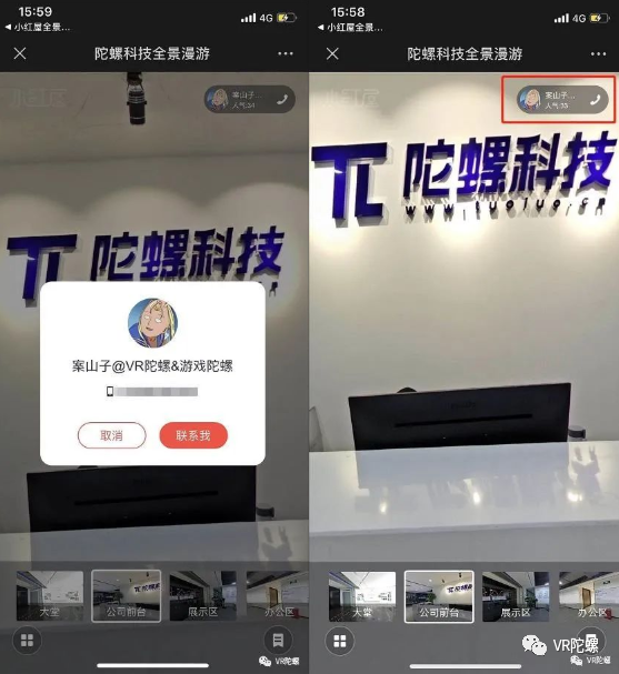 作品完成后在App中一键发布,同时能够将作品分享到微信群或者朋友圈,不需要借助任何第三方应用即可观看。以下是VR陀螺自制的公司全景漫游视频:
