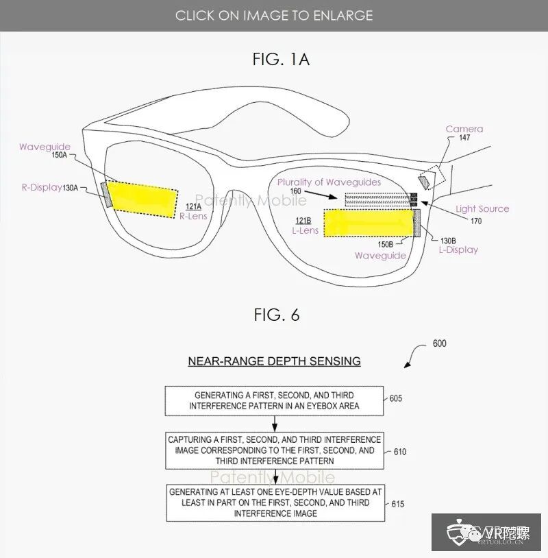 Facebook的专利图附图说明图1A是智能眼镜的示例,该智能眼镜示例包括照相机和生成用于近眼深度感测的相移干涉图案的波导;图6示出了用于近距离深度感测的方法的示例流程图。