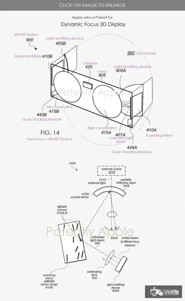 本周,美国专利商标局公布了苹果公司为一款新型混合VR/AR设备申请的专利,该设备摒弃了传统的屏幕,采用动态聚焦3D显示技术,将图像直接投射到用户的视网膜上。