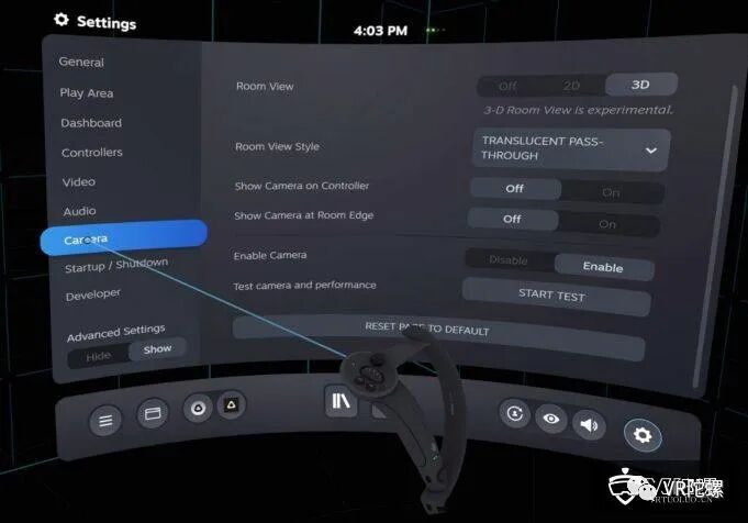 Valve在本周发布了针对Index的passthrough视图的实验性升级,该视图旨在解决这些问题并为用户提供“立体正确”的视图。Valve称其为“ Room View 3D”,如果您自己拥有Index头显,今天就可以通过安装SteamVR beta版本1.13,然后在SteamVR的“相机”选项中启用“3D”来进行检出。在此更新中,Valve还更新了Index的固件,以减少头显摄像头的延迟。