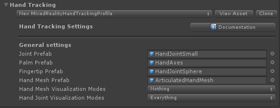 打开新建的MRTK配置文件,找到其中的HandTracking文件,可以看到我们能够配置的内容。