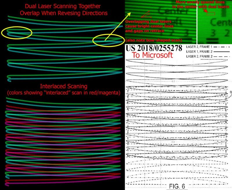 微软在uspto中2018/0255278号专利也明确讲述了双激光扫描器的隔行扫描工作原理。