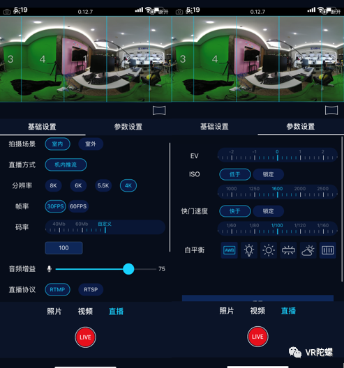 360Anywhere搭配了专用APP以及PC应用。APP端可在拍摄时实时调节参数,控制拍照、视频、直播三种模式,通过热点连接相机后,在APP端可以对分辨率、帧数、码率、ISO、快门速度等参数进行调节。