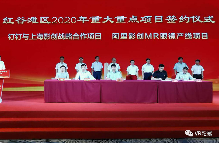 8月19日上午,南昌市人民政府、阿里数字江西科技有限公司、江西影创信息产业有限公司在南昌签署框架合作协议,宣告阿里影创VR研究院成立,并同时启动MR混合现实硬件制造自动化产线项目。此外,影创还正式宣布将于今年世界VR产业大会之际,联合高通公司,面向全球发布一款命名为“鸿鹄”的消费级MR眼镜。