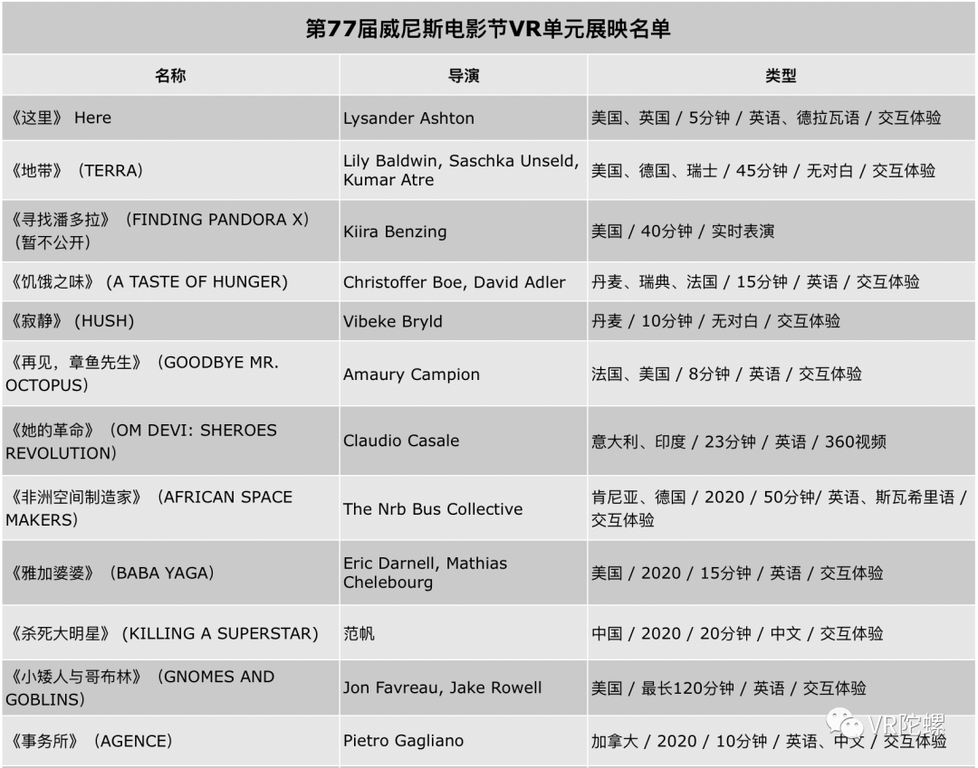 与往届不同的是,SIF 2020此次将于10月31日在杭州举办,由中国美术学院与砂之盒沉浸研究院联合主办,同时双方也首次将威尼斯电影展VR单元引入国内,在9月2日-12日带来44部优秀作品的现场展映。